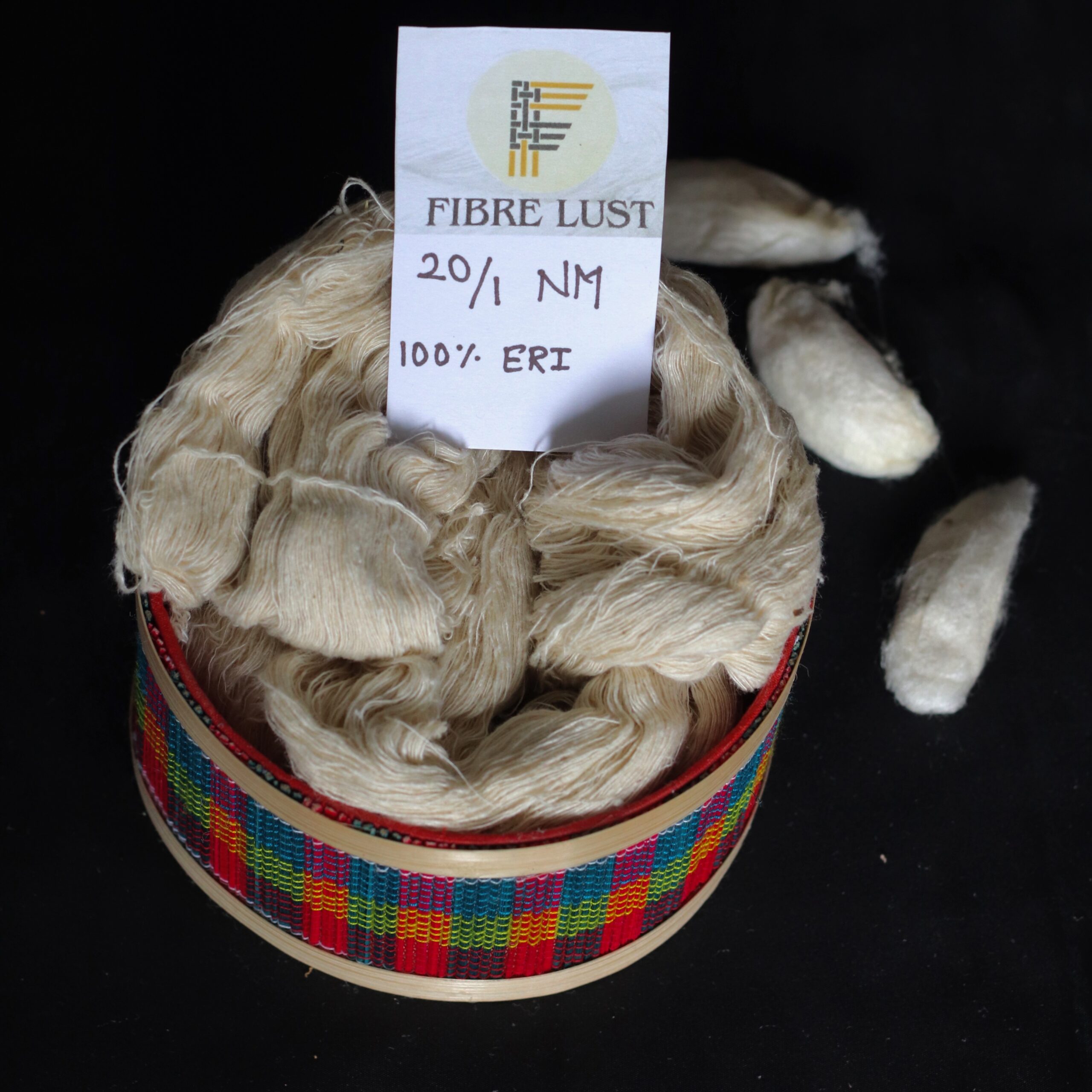 The 20/1 NM Eri Silk Yarn is a thick, raw-format yarn made from pure Eri silk, ideal for high-texture and heavy-duty weaving. Single-ply and untwisted, this yarn carries a bold character—perfect for artisans and designers working with deep texture, warmth, and rustic visual appeal.