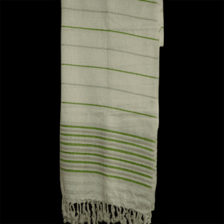 Drape yourself in the timeless elegance of the Ancient Roots stole, a piece that celebrates the rich heritage of its origins. This exquisite stole is meticulously handwoven from pure Eri silk, celebrated as “peace silk” for its ethical, cruelty-free harvesting. The undyed natural beige base provides an elegant backdrop for the intricate patterns woven in a deep charcoal thread. A central band showcases a graceful row of stylized trees and floral motifs, flanked by intricate geometric borders that speak to a rich weaving tradition. Each thread is a testament to the artisan’s skill and dedication. With its soft yet substantial drape, this stole offers a luxurious feel and an air of effortless sophistication, perfect for the conscious connoisseur who values both style and substance.