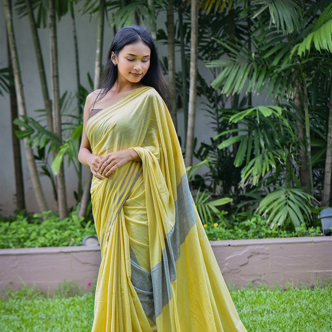 Color Palette: Soft Lemon Yellow with Subtle Grey Pallu
